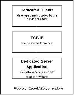 The standard architecture of the past was to build dedicated applications that provided the functionality required by the user as a complete system, delivered on discs or tapes. Applications that were designed to access remote data would be build using client-server technology, where a user interface would be provided which could connect over the Internet to the remote server system. These two parts are dedicated to each other and do not typically provide any links or compatibility with other systems.