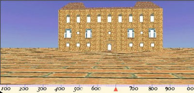 Figure 5: 3D exploration of historical palace - zoom view – walk mode (seventeenth century) During navigation, also the temporal context remains active, as indicated by the time bar on the bottom of the screen. At any point in space, users can select a different time period and experiment the "Zemeckis’ Back to the Future" effect: if the representation of the current space context is available for the chosen period, they are "projected" into a 3D virtual world in which the town is re-constructed as it (presumably) was in that time, and they can continue navigation from the same space position. If no urban structure existed for the current place in the selected period, users find themselves in the middle of "nowhere" - a green land with nothing around. They can try to "return to town" by either navigating the desert 3D space in some direction, or by accessing the (historical) map of the town which corresponds to the current period, selecting a new entry point in space. 3. User interaction in 2D Temporal Navigation From a town map, or at any point during 3D navigation, user can access information related to what they are currently exploring. The 2D world is a conventional web site which presents multimedia content related to monuments, buildings, streets, squares of Milan – not only existing now, but also in the past. It also include information about the history of a place and its architectural aspects, about the historical and social context in which it was built, about anecdotal events, curiosities, and relevant personages related to it. An example of 2D web page in "Milan along the centuries" is shown in figure 6.