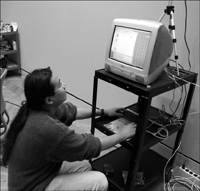 Configuring the in-gallery "webcam" The On-site Exhibit The on-site exhibition took place in series of special exhibition galleries off of one of the museum's main corridors. The space consisted of a small introductory gallery, a larger exhibition space and a video viewing room. Upon entering the introductory gallery visitors had the opportunity to study a large reproduction of the unrestored painting, a panel describing the scope of the exhibition, a panel devoted to the history of the artist and the painting, and some preparatory sketches. Immediately off of the introductory gallery was a video viewing space containing benches and a 30" video monitor. The short video program shown in this space was designed to provide an up-to-date overview of the restoration process, including the paintingís deinstallation from the gallery, laboratory x-rays, and transport into the adjacent exhibition gallery. In addition, the program contained a general outline of the restoration process. This outline was designed from the onset to allow documentation of the actual process to be inserted into the program as the project restoration progressed. The video program was run on a repeating loop during public museum hours to present the prior steps in the process to current museum visitors and to provide more life to the exhibit for those visitors viewing the painting when the conservators were not present. This same video program was also made available through the project's web site and will be discussed in more detail in the online section of this paper.