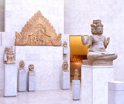 RenovationsIn the decades following the 1920s, and particularly after the war, the museum's original floor plan underwent a series of modifications that slowly boxed off the museum's spacious galleries into small and ill-lit rooms. Cheaply-done repairs and renovations left the interiors looking shoddy. Reigning museum design concepts of the 60s and 70s favored very dark rooms in which pieces were lit by spotlights. Finally, the very large holdings of the museum could not be adequately contained in the limited storage reserves, and climate control was almost non-existent. It was clear that a major renovation was required if the museum and its collections were to survive into the 21st century (Eskerdijian, 2001). In 1996 when the museum closed, its collections were transferred into offsite storage and the entire interior of the museum was gutted and reconstructed. Two additional levels were dug below ground to house the reserves. The "new" Musée Guimet that opened five years later emphasizes natural light wherever possible, and space. The visitor who slowly ascends the museum's floors follows a path that geographically extends roughly from west to east, from India and Pakistan to Japan and Korea. Galleries and floors open onto each other so that connections between various civilizations can be seen more readily. Most importantly, the thematic and iconographic displays from the museum's origins have been supplanted by a spare, uncluttered museology in which the emphasis is on stylistic presentation and historical and geographic continuity. The museum that greets the 21st century is thus considerably different from the one that greeted the 20th century.