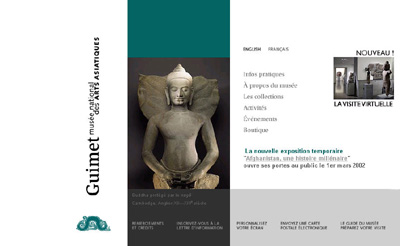 The Beginnings of the Web SiteThe museum's first Web site appeared only in 1997, when the museum had already been closed for more than a year. It consisted of a few pages, mainly intended to inform the visitor about the work in progress and when the museum would reopen. The site remained untouched for more than three years, and then was dismantled. When the museum closed for renovations, very few French museums had a Web presence. However, by the time the museum reopened, France had begun to make up for an initially reluctant presence on the Internet, and a comprehensive Web site for the newly refurbished museum was seen as a necessity. The Director's VisionThe initial direction and scope for the project came from the museum's director, Mr. Jean-François Jarrige. During initial discussions, his vision of the site and what it should accomplish was clear, focused and far-reaching. According to him, the Musée Guimet's Web site should: